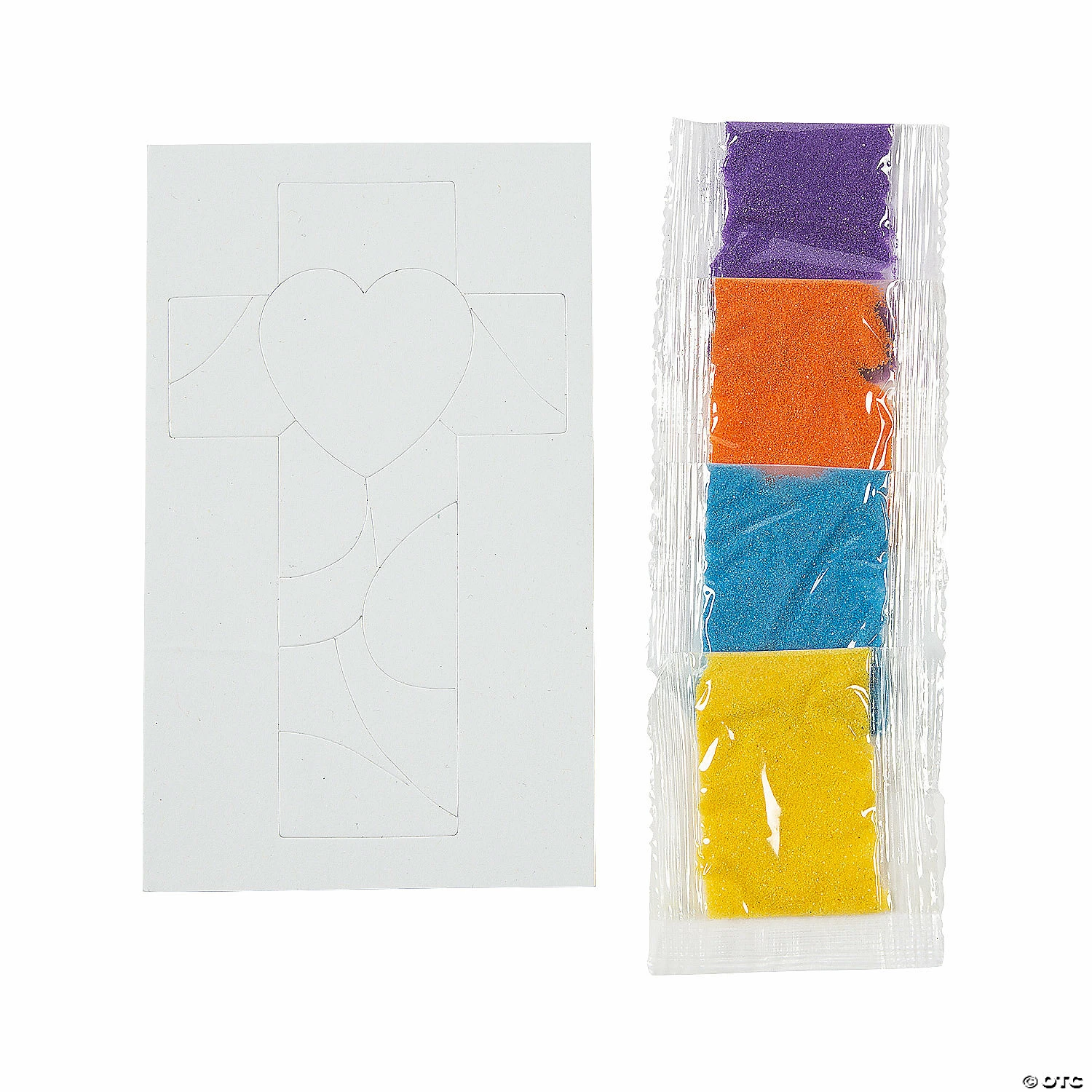 Create colorful sand art with this inspirational cross picture craft kit! Inspire artistic designs with this craft, which is an ideal project for Vacation Bible School or Sunday School. Simply peel off the protective covering to reveal an adhesive surface, then sprinkle on the sand. Cardboard. 3 1/4″ x 5 1/2″ Makes 12. Includes bags of assorted color sand. All craft kit pieces are pre-packaged for individual use. Kits include instructions. ยฉ OTC